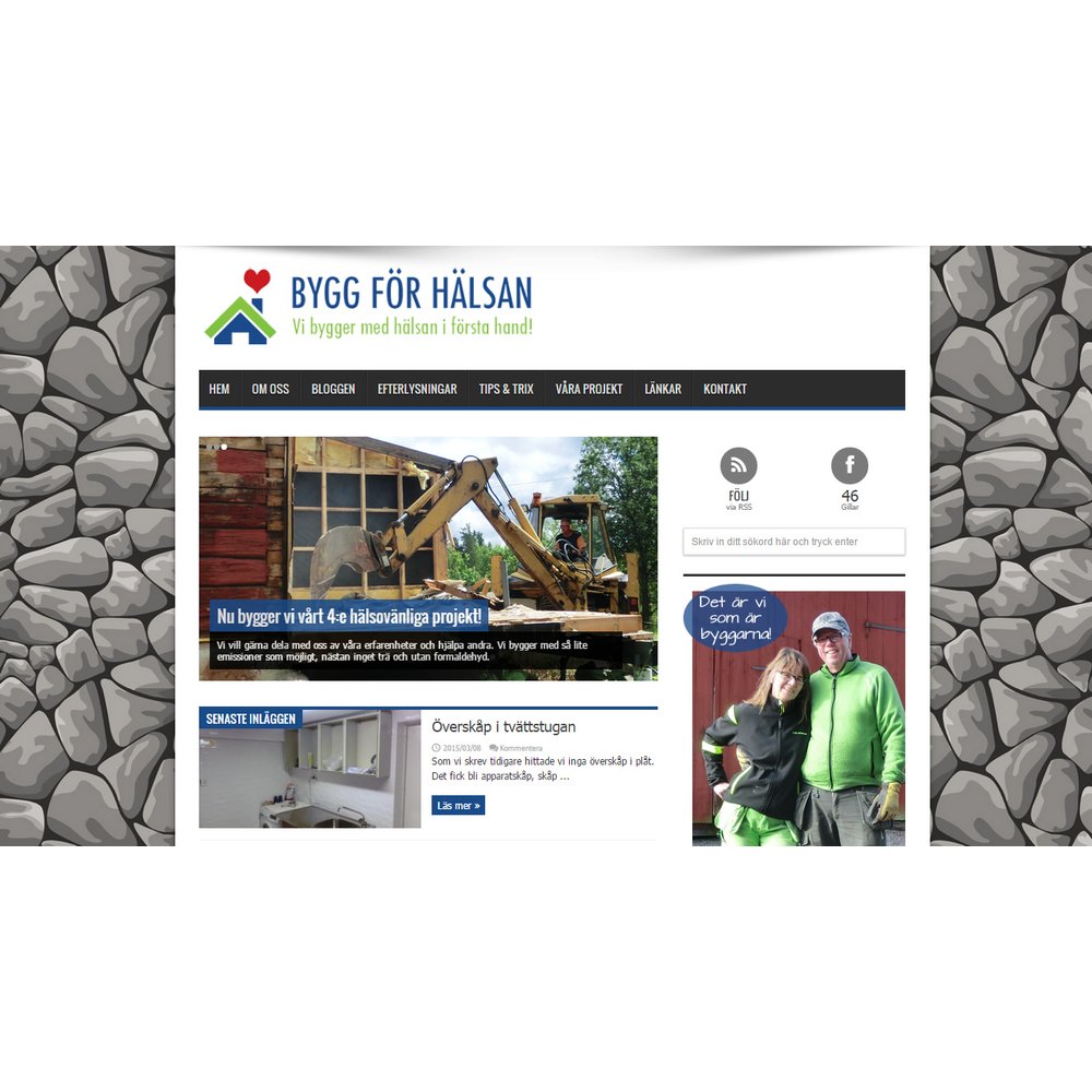 Bygg för hälsan är bloggen där vi får följa Leffe och Lenas byggprojekt. Det unika med denna blogg är paret bygger med hälsovänliga material, då Lena är känslig för kemikalier. På bloggen finns massa tips & trix för olika utmaningar man kan stöta på vid husbyggnadet. Bloggen uppdateras frekvent med härliga blogginlägg och bilder.