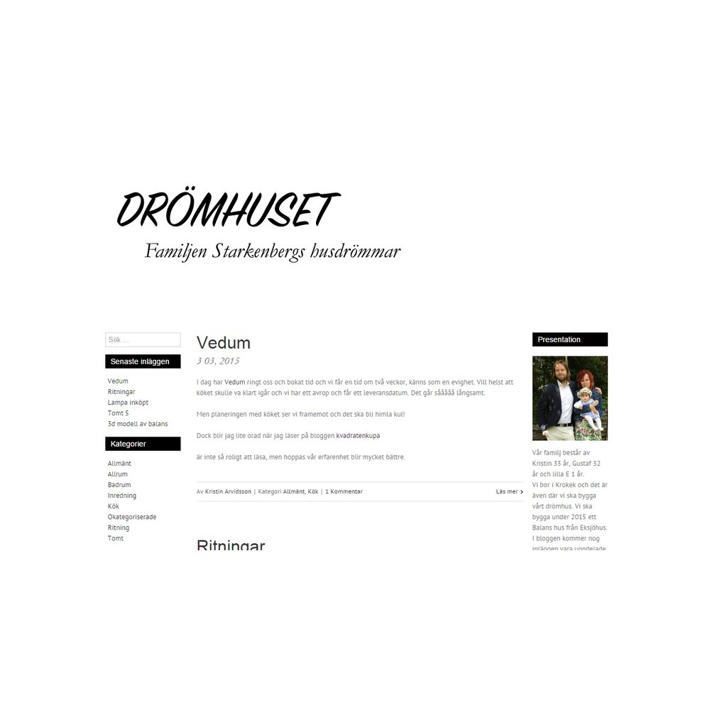 Bloggen Drömhuset är relativt nystartad och passar perfekt för dig som vill följa ett husbygge under tiden det tar form. Bloggen skrivs av Kristin och Gustaf och kommer beröra allt ifrån stenläggning och garagebygge till färgval och inredning. Familjen planerar att bygga ett ”Balans” hus från Eksjöhus.