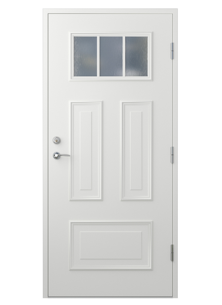 Ytterdörr Annette med glas har ett klassiskt vackert formpressat listverk som bildar speglar och ramar in dörrens rektangulära fönster. Här kan du själv välja om du vill kunna se vem som kommer och hälsar på genom att välja klarglas, eller om du föredrar insynsskyddat och i så fall kan du välja frostat glas eller cotswoldglas med lite mer karaktär. Denna klassiska dörr med enkla spröjs lämpar sig oerhört fint till den klassiska, såsom den traditionella eller moderna arkitekturen.