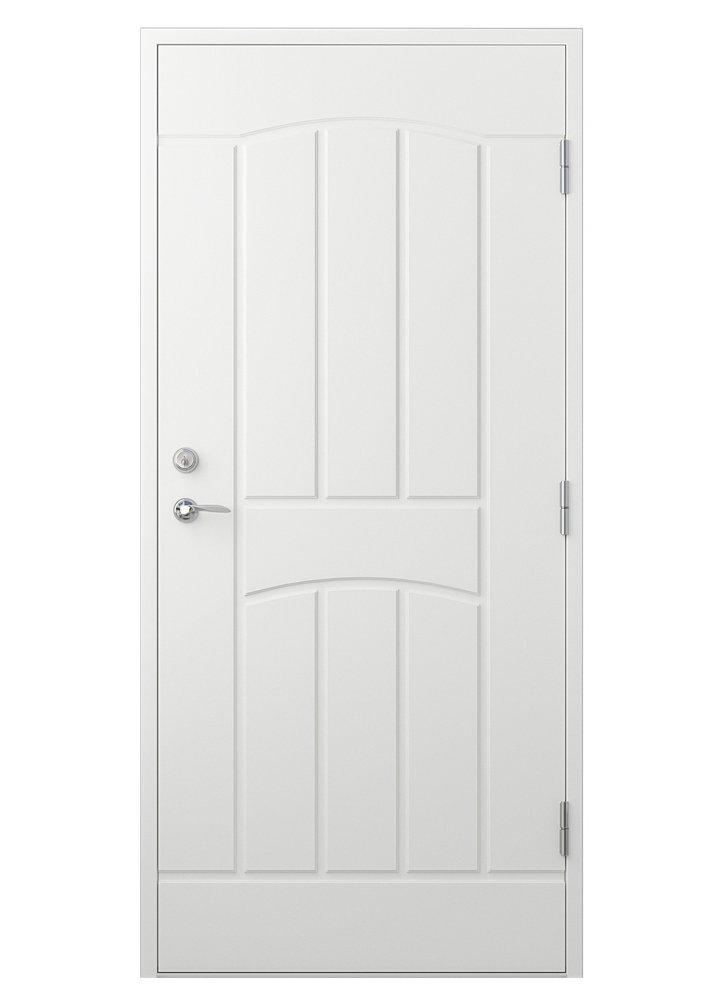 Många ytterdörrar på marknaden har en slät insida, men med denna dörren får du både insida och utsida med det fina frästa mönstret. Dessutom har den fabriksmonterad dubbel tätningslist för extra isolerande effekt, låskista och justerbara gångjärn inkluderat.