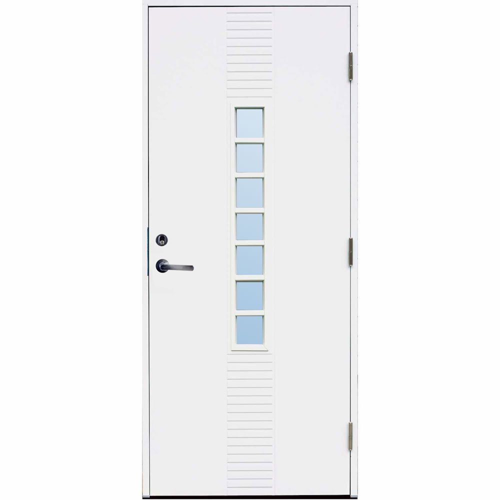 Många ytterdörrar på marknaden har en slät insida, men med denna dörren får du både insida och utsida med det fina frästa mönstret. Dessutom har den dubbel tätningslist för extra isolerande effekt, låskista och justerbara gångjärn inkluderat.